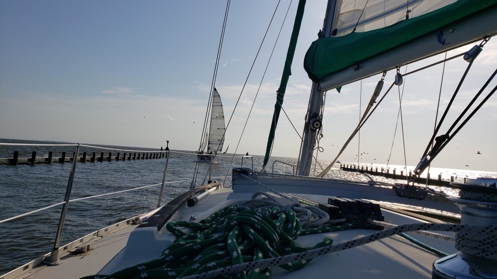 The beautiful majesty of sailboats heading out to the Albemarle Sound is a pleasure we get to experience every Wednesday night in Colington Harbour. At 6:00PM we see sailboats from every canal making their way to the harbor and circle up until all are gathered. It is a stunning sight, one which I can see from my westward-facing deck. I’ll never forget the first week we lived here. I was washing dishes and looking out the eastward-facing window when suddenly I saw a huge “pole” moving behind the houses across the street. For a brief moment I had a “War of the Worlds” flashback, and imagined that this was the first landing of some kind of alien invasion. It turned out to be the mast of a large, fast-moving sailboat that was going to the weekly community sail. What a relief!