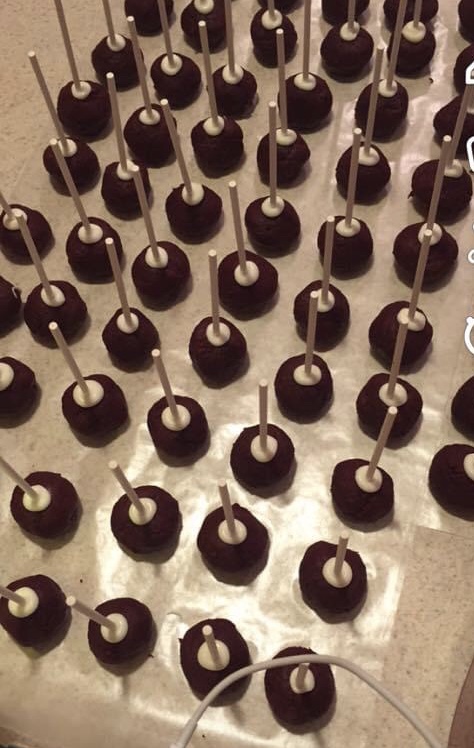 One contest was to make holiday cake pops. This peaked my non-baker’s interest, as I have always wondered how they are made. Do they use a special ball-shaped form? A muffin pan made of perfect spheres? Do they bake cake into thick squares and then sculpt them into neat balls and stick a lollipop stick in the bottom?