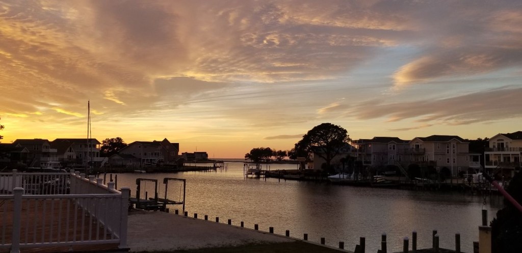 I love sunsets in the Outer Banks until they start coming too soon. By some anachronistic turn of fate, Daylight Savings time comes along to steal our days right out from under us. As we approach the Winter Solstice, daylight becomes a vanishing commodity and pretty soon it is pitch black around 5:00 PM. Do you want to know what my favorite day of the year is? The day after Winter Solstice, around December 21 or 22. That day marks our march toward longer hours of daylight and later sunsets, and I can immediately feel its encouragement and warmth as the sun makes its annual comeback. Like the star that she is, you can’t keep her down for long.
