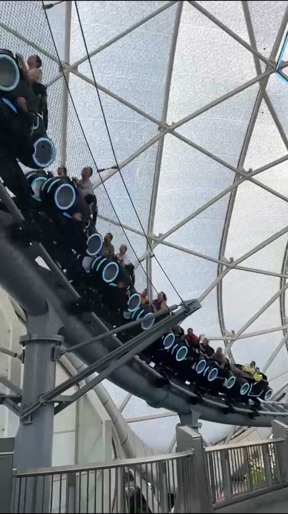 When we got off the ride, I looked through the crowd to see if I could spot Emily. We had gotten separated before we rode, so I did not know if she got on or not. Sure enough, there she was with her parents, standing by the exit. I asked her if she rode, and she beamed with pride and said she had! We high-fived several times and she couldn’t stop talking about it and wanted to know if I had been on Guardians of the Galaxy, which they would ride the next day. I assured her that once she had conquered TRON, she could ride anything. We chatted some more and high fived several more times, and her parents glowed with their pride for her. I was proud of her, too.