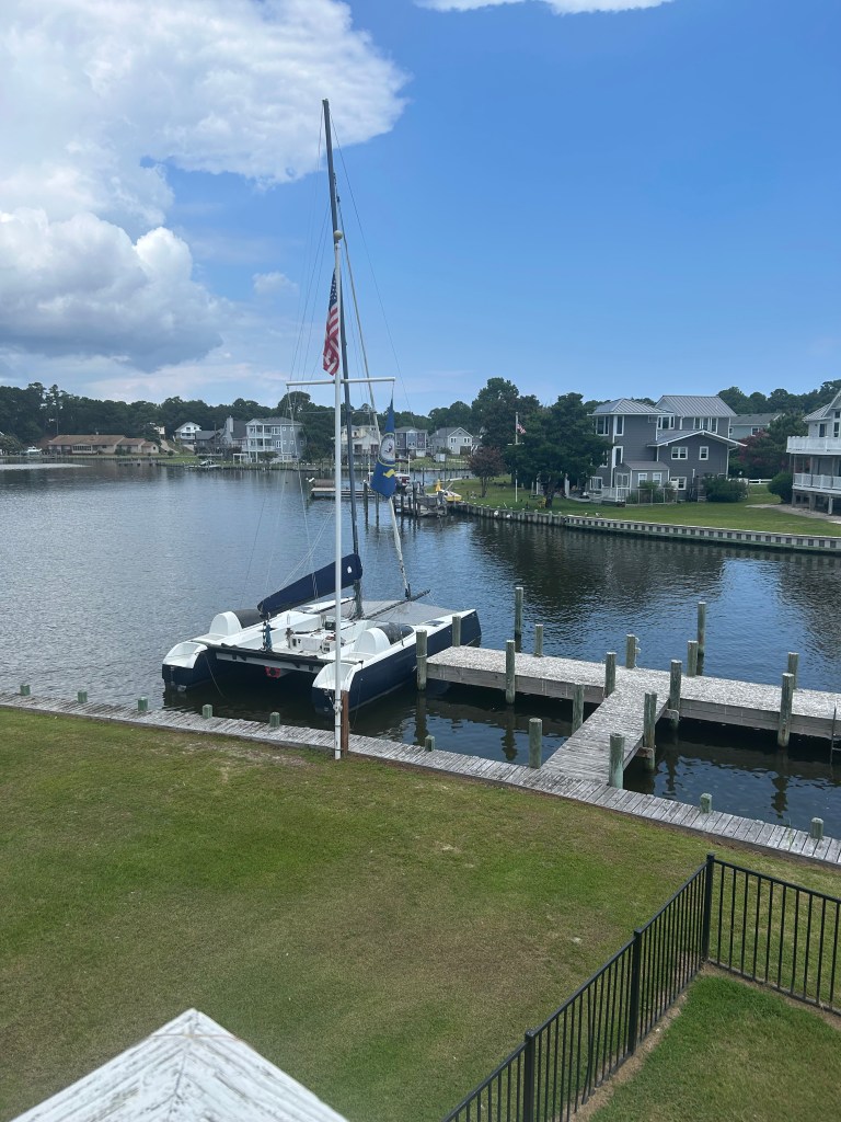 I had an unusual opportunity to offer safety to a total stranger on Monday. A post on our local Colington Harbour Facebook page asked for a safe dock for a large catamaran sailboat that was currently traveling from Annapolis to Hatteras. The decision was made to pull into Colington for the duration of the storm, and the sailor was looking for a place to tie up for a few days. I happen to have a large unused dock, so I quickly offered it. In less than an hour, this beautiful boat was safely secured to my dock. It gave me great joy to share my blessing with them. I too have known the need for safe harbor in my life.