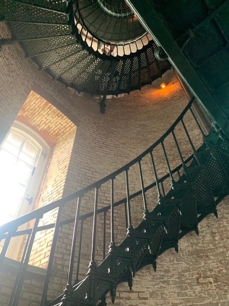 I have a natural curiosity about the lighthouses that dot the East Coast. There are five lighthouses located on the Outer Banks where I live. Lighthouses used to be run by Lighthouse Keepers, whose job it was to climb twice a day to the top and maintain the oil, wicks, Fresnel lenses, and flame. From the early 1800’s to the very last East Coast light house to be automated in 1998, the keepers and their families worked seven days a week to keep the light on.